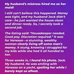 Instead, one week after walking independently, David handed me divorce papers. He said he wanted freedom and claimed I had chosen to sacrifice my life for him. Then he confessed he had been having an affair—one that began before his accident. The crash had happened while he was on his way to see the other woman. For years, while I worked and cared for him, he secretly used our money to support that relationship.