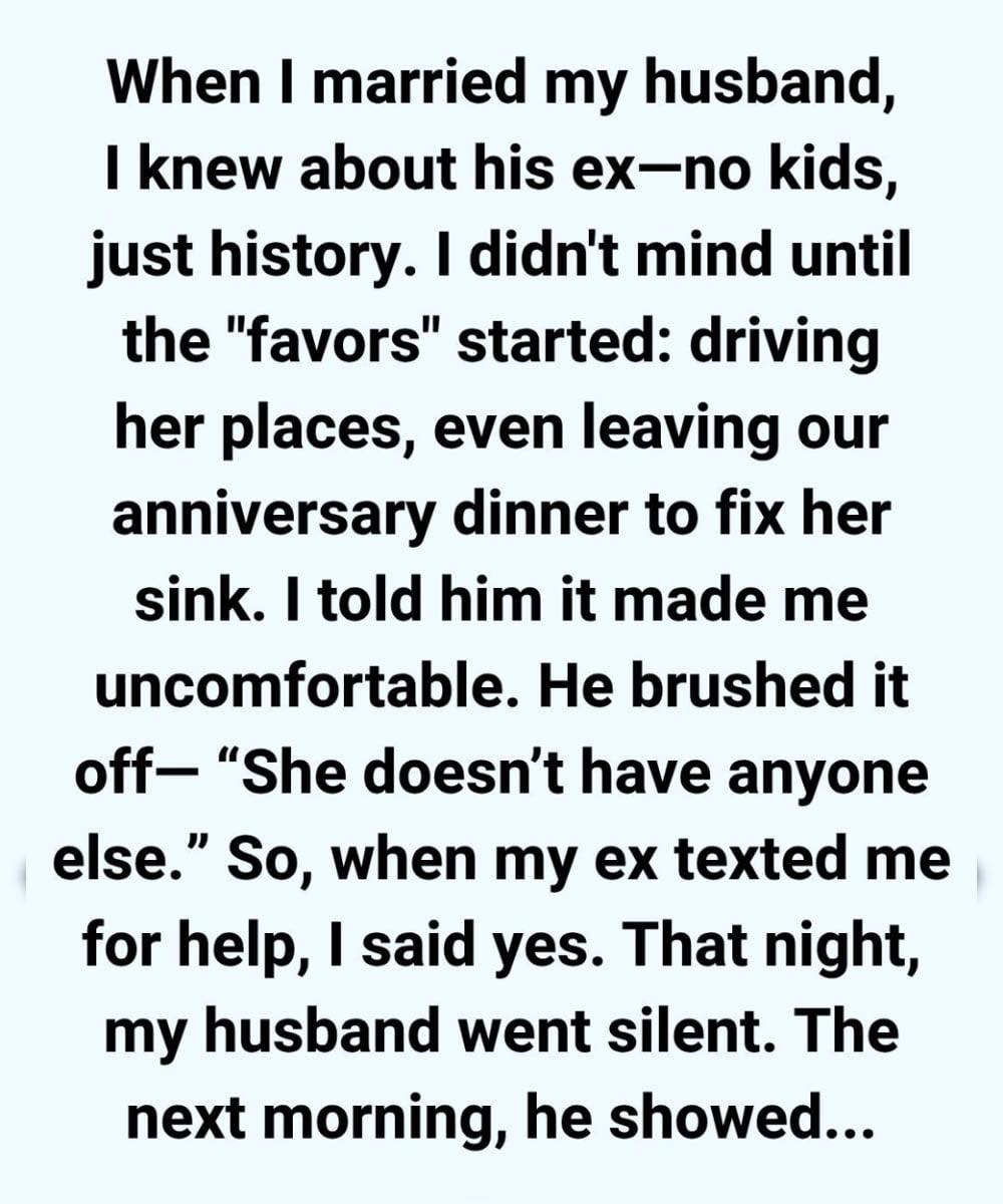 When I married my husband, I knew about his past with his ex-wife, Sarah. There were no children, no shared mortgage, no complicated ties—just memories from a closed chapter. At first, it truly didn’t bother me. But then the “small” requests began: fixing her Wi-Fi, checking her car, reviewing a lease, giving rides to the airport, even responding to late-night emergencies that somehow couldn’t wait. And every single time, he said yes. When I admitted it made me uneasy, he brushed it off, insisting she had no one else and that he was just being practical.