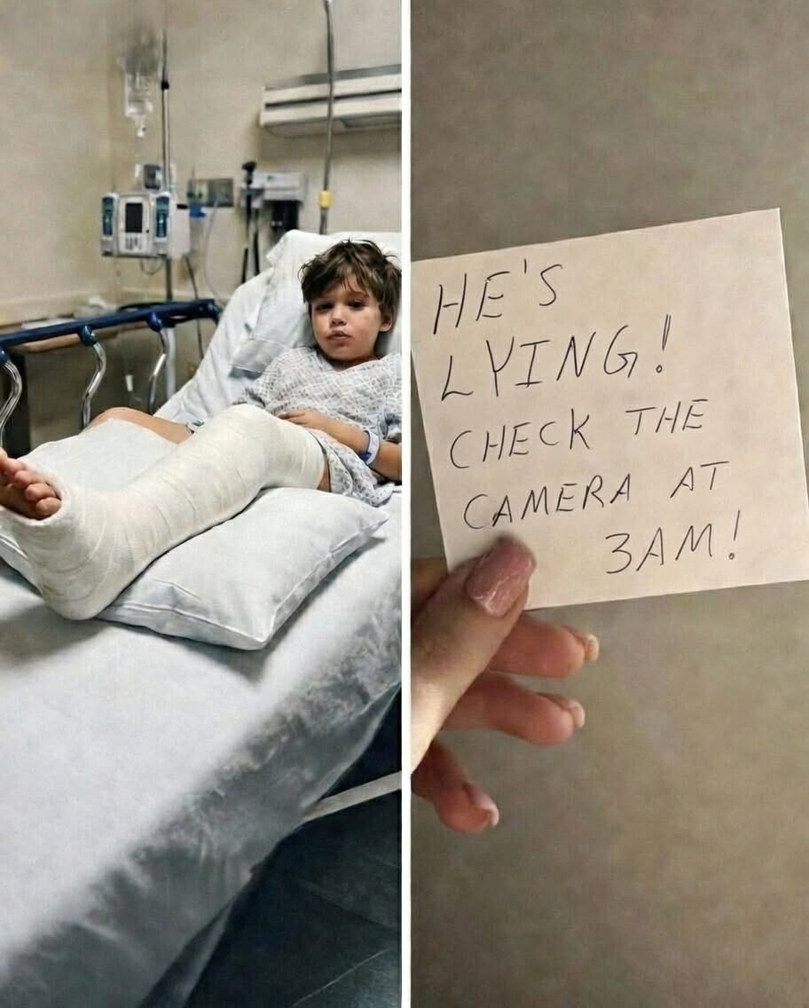 Jasper insisted he had been there the whole time and that Howard had simply slipped. But something about the moment felt wrong. Howard avoided my eyes, and when Jasper reached over to smooth his hair, my son flinched almost imperceptibly. A charge nurse noticed it too. As she passed me quietly, she slipped a folded yellow Post-it into my palm. Later, when I opened it, the message inside made my stomach drop: “He’s lying. Check the camera at 3 a.m.” She explained that the pediatric rooms were monitored and told me where to go to see the recording.