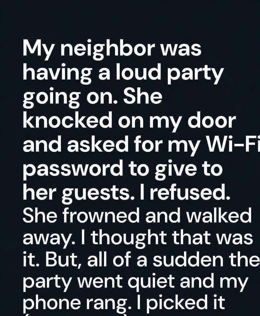 I was surprised by the request and politely told her no, explaining that I prefer to keep my network private. She frowned slightly, muttered a quick “Okay, thanks anyway,” and walked back to her apartment. I assumed that would be the end of the conversation and expected the loud music to continue.