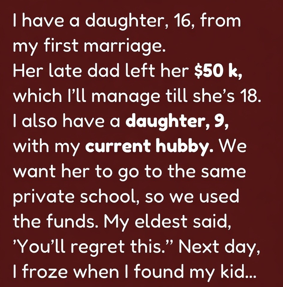 Every family has a moment that changes everything, and ours came on a rainy Thursday when my sixteen-year-old daughter, Lily, looked at me with cold betrayal in her eyes. I had promised her that the inheritance her late father left would remain untouched until she turned eighteen—a symbol of his love and her future. But after his passing, financial pressure mounted, especially as my younger daughter, Emma, dreamed of attending the same private school Lily once did. Wanting to be fair, I convinced myself that using Lily’s inheritance was a temporary solution, a loan I would repay before she ever found out.