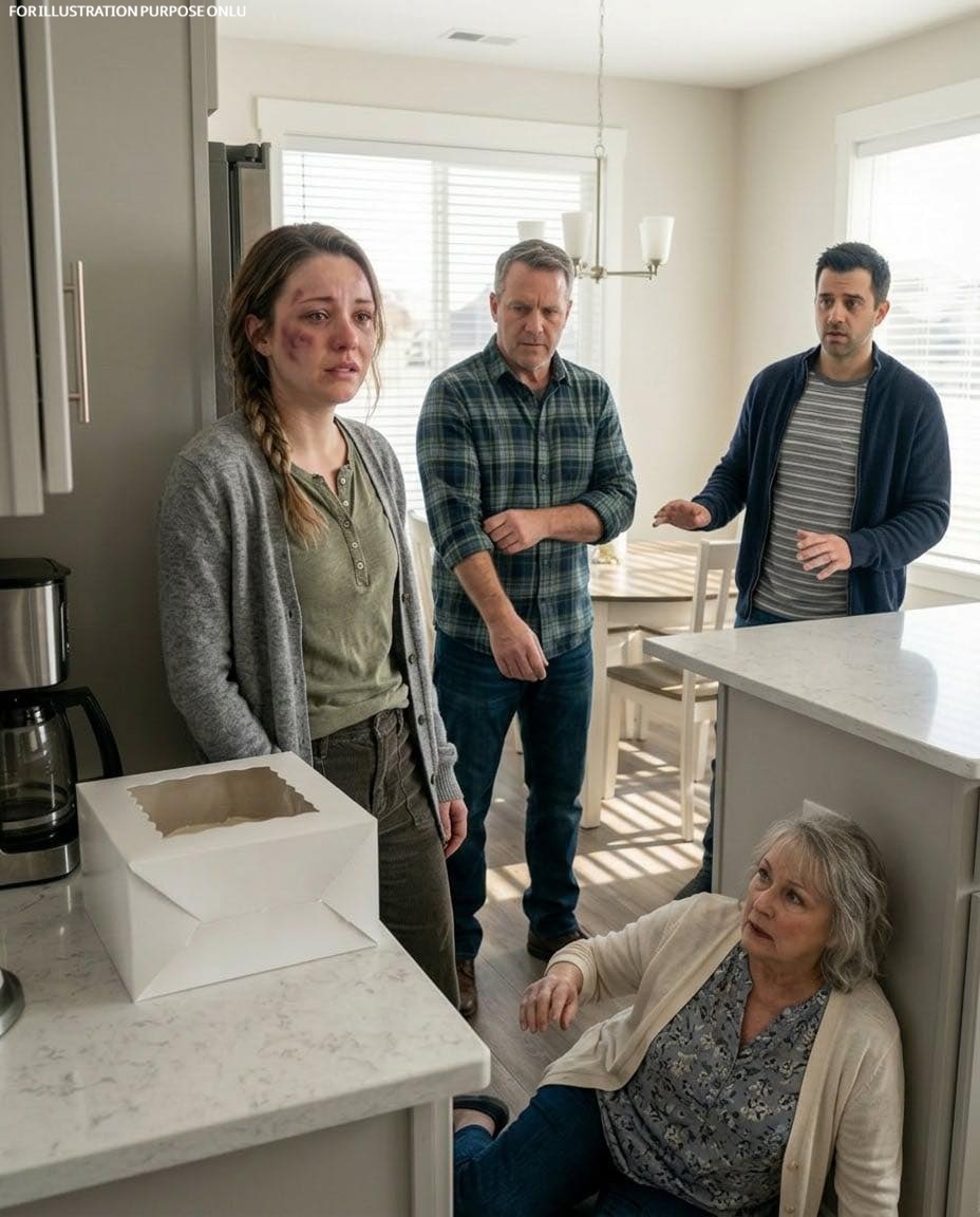 On the morning of my thirty-second birthday, my father walked into my home carrying a strawberry shortcake, only to stop cold when he saw the bruises covering my face. His voice softened as he asked who had done it, but before I could answer, my husband Derek smirked and admitted it without shame. The room fell into a heavy silence, broken only by the faint clink of dishes in my trembling hands. My mother-in-law avoided my gaze, as if pretending not to see would make it disappear. In that moment, everything I had tried to hide was suddenly exposed.
