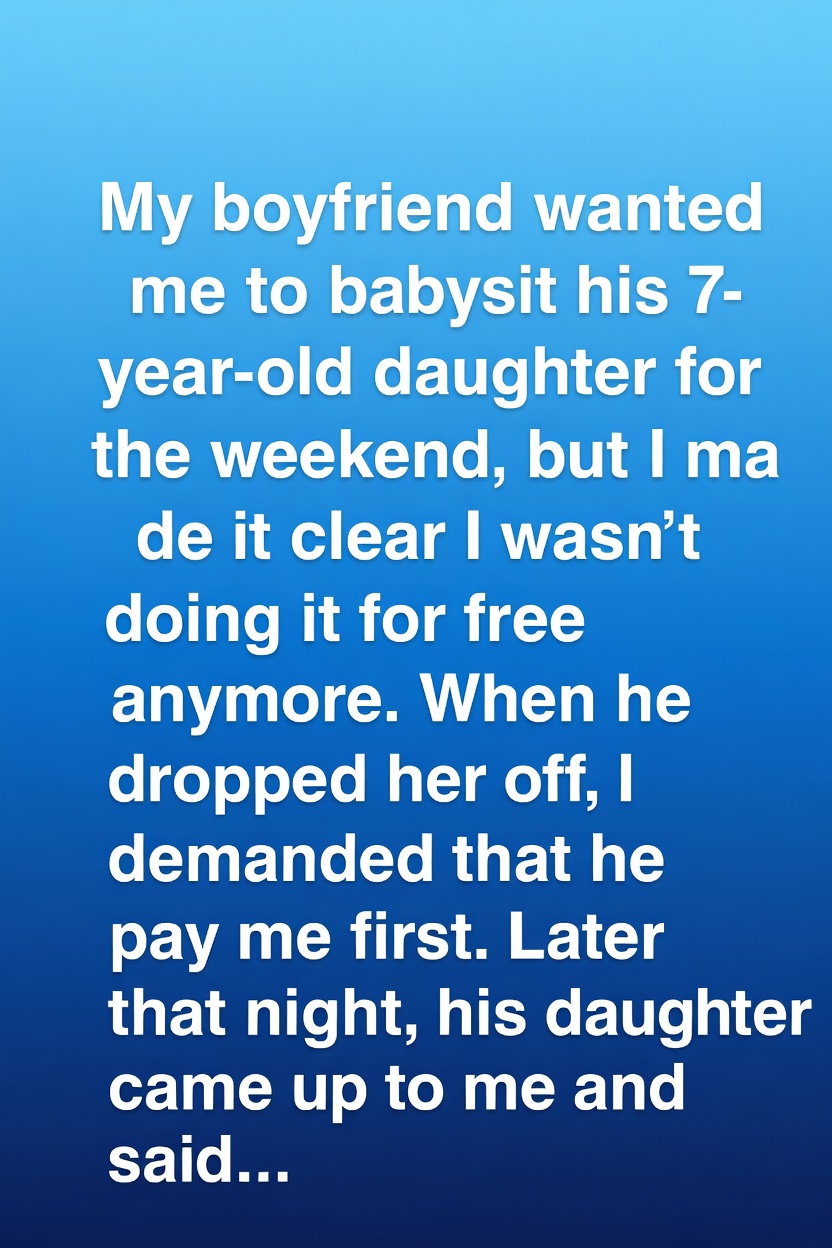 Setting boundaries always felt like the right thing to do, especially when I started feeling like I was giving more than I had ever agreed to. When my boyfriend asked me to watch his seven-year-old daughter more often, I hesitated, knowing I cared about her but also knowing something felt unbalanced. I told him honestly that I couldn’t keep doing it for free if it became a regular expectation, and even though he didn’t argue, the shift between us was immediate. That night, when she quietly told me she felt safe just because I was there—not because of money—it hit me that sometimes what we offer emotionally matters more than what we measure practically, and not every situation can be reduced to fairness alone.