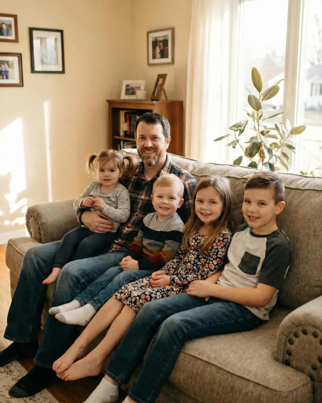 One night, long past midnight, I was scrolling through Facebook when a local news post stopped me cold. It showed four siblings—small, pressed together on a bench—about to be separated by the foster system. Their parents were gone. No family could take them all. If no one stepped forward, they would be placed in different homes. That single line—likely to be separated—hit harder than anything I’d read in two years. I studied their faces, the way the oldest leaned protectively toward the others, the way they looked like they were bracing for another loss. I knew what it meant to walk away alone after a hospital hallway goodbye. By morning, I was calling Child Services, telling myself I was only asking questions, even though I already knew the truth.