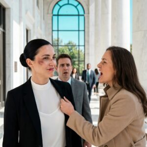 In a courthouse hallway, Rachel Walker stood still after being slapped by her husband’s mistress, Emily Carter, while her mother-in-law, Linda Walker, watched with thinly veiled satisfaction…