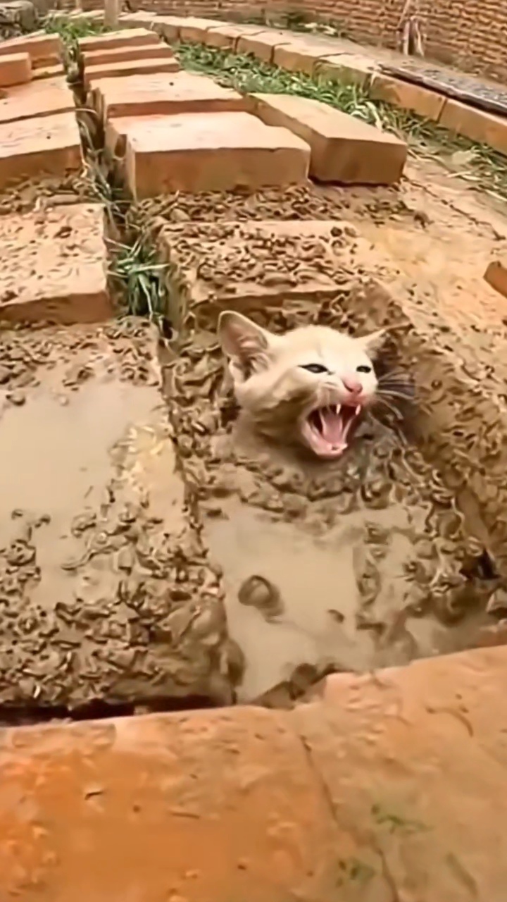 In a dusty courtyard lined with old bricks,coered from whiskers to tail, the kitten lay on its back, paws in the air, mouth wide open.WATCH VIDEO BELOW…y