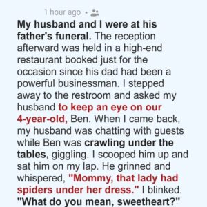 The reception after my father-in-law’s funeral was quiet and polished, filled with forced condolences and the clink of crystal glasses. I stepped away briefly, asking my husband…