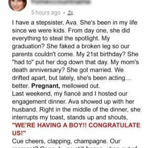 My stepsister Ava has always competed with me, turning my milestones into her stage. From fake injuries to dramatic outbursts, she constantly redirected attention to herself—even faking…