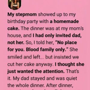 My stepmother showed up at my birthday dinner with a homemade cake, even though I had only invited my dad. The celebration was at my mom’s house,…