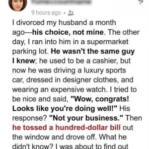 Katherine’s quiet afternoon shattered when she saw her ex-husband, Michael, stepping out of a gleaming white sports car. Only a month after their divorce, he looked transformed—dressed…