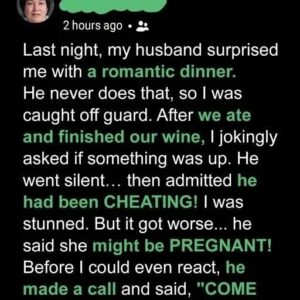 My husband surprised me with a romantic dinner, which immediately felt unusual. Afterward, he went quiet and confessed he had been cheating—and that the other woman might…