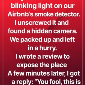 What began as an ordinary stay at an Airbnb quickly took an unsettling turn when my wife noticed a faint, steady blinking light coming from the smoke…