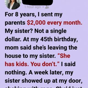 For eight years, I sent my parents $2,000 every single month—quietly, consistently, without ever asking for recognition. It became second nature after my dad’s first health scare,…
