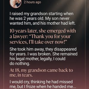 A grandmother who once expected a quiet retirement found her life completely transformed when she became the full-time caregiver of her two-year-old grandson. With no preparation, she…