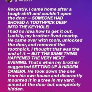 After a long shift one evening, I came home and couldn’t unlock my front door. Someone had jammed a toothpick deep into the keyhole. My brother came…