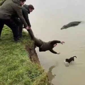Man Risks His Life to Save a Puppy from a Crocodile