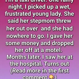 I’m a taxi driver, and one rainy night I picked up a young woman who was soaked, upset, and out of options. She told me her stepmother…