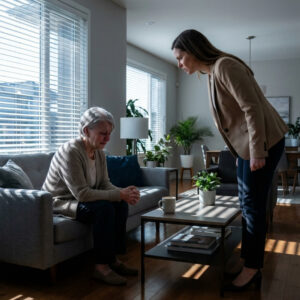The house felt tense and watchful as Margaret sat trembling on the sofa, trying not to cry. She had only come to visit her son, but the…